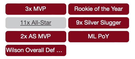 Albert had 5 All-Star appearances, 5 Silver Sluggers and a MLB Player of the Year award, something Trout also won. That's it. Baseball is about awards as well as stats, and Belle does have some damn good numbers. But bottom line is he wasn't as well liked by the writers as Trout is and he's right, it's a popularity contest. Always has been. It's why David Ortiz who failed a PED test is in the Hall and Barry Bonds isn't.