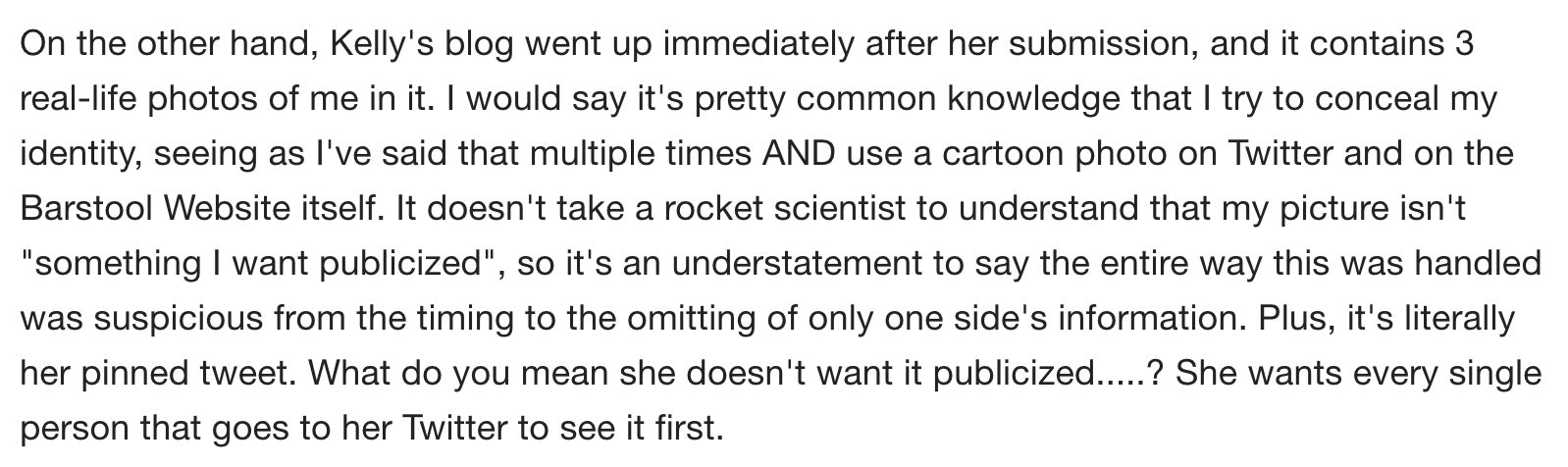 Call me crazy, but directing people to a hate on a page that I have, outside of Barstool, is a little different than me googling "Ohio's Tate" and grabbing screenshots from Barstool videos that he was in.