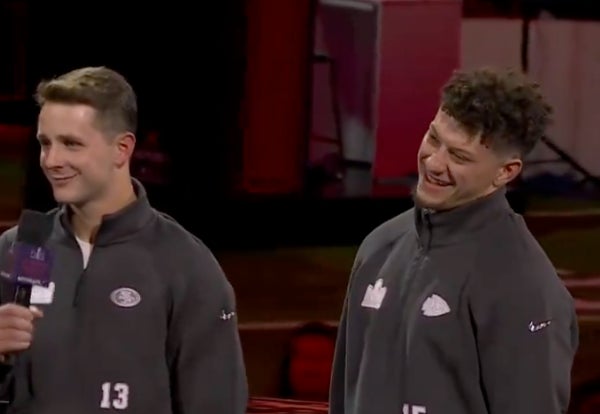 That's a man who knows everything is going his way. That's a man who knows Brock Purdy is about to get bombarded from Taylor Swift fans as they have a new enemy. You don't disappoint Taylor Swift, she disappoints you. Vet move by Mahomes too, he knows what Super Bowl media day is all about. He knows how to prep and win. He also knows he has Taylor Swift and her millions of fans on his side. Not a bad combo to have.