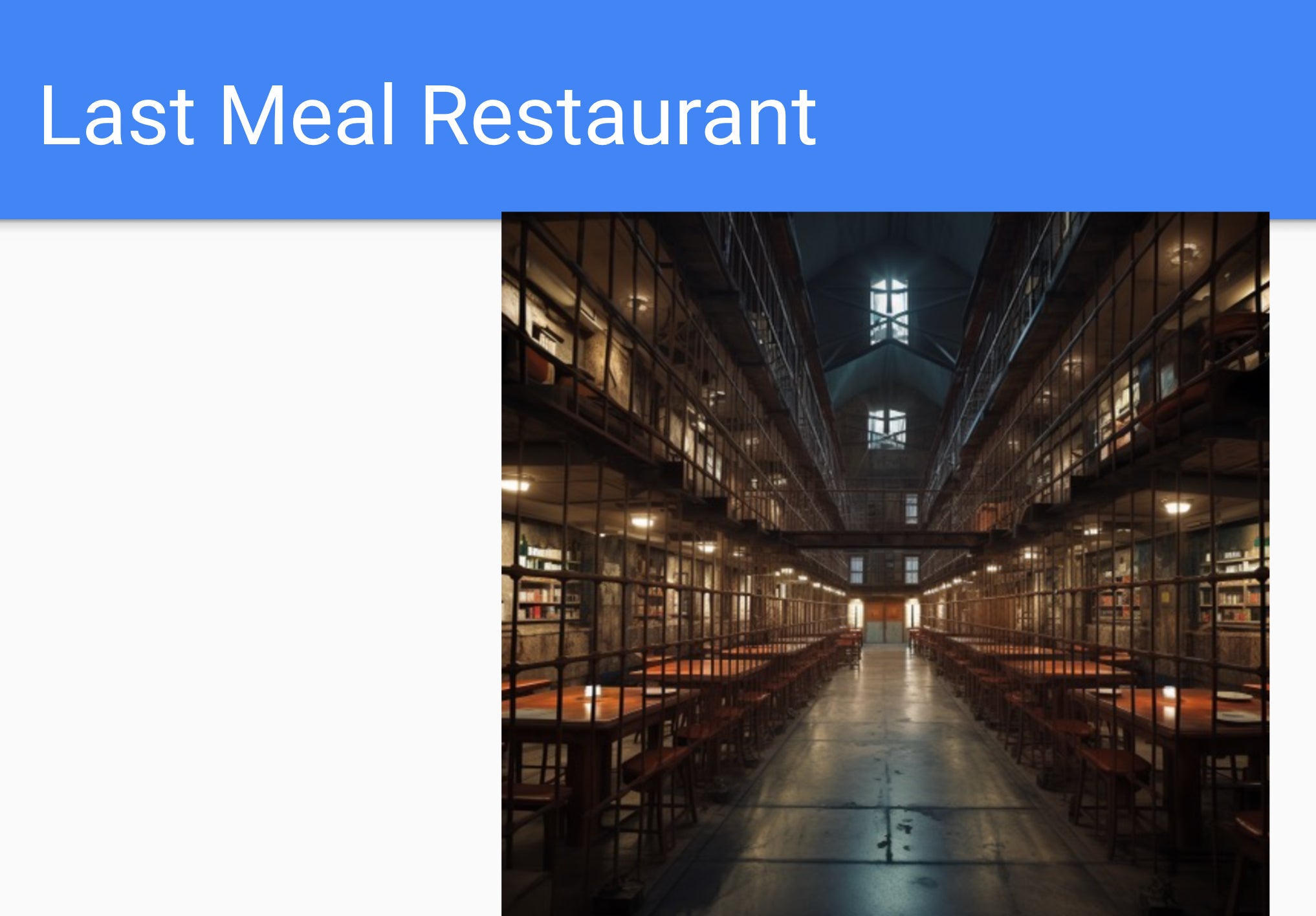 I've always found the idea of a last meal kind of awesome. Just getting to order a bunch of whatever you want and scarfing it down. It's a shame we only reserve that experience for first degree murderers. This restaurant would be prison-themed and give you that experience of a last meal. You can order anything you want and our top chefs will make it for you. The waiters are dressed like prison guards. There's no to-go boxes. It's just like getting a last meal on death row but you don't end with a lethal injection.