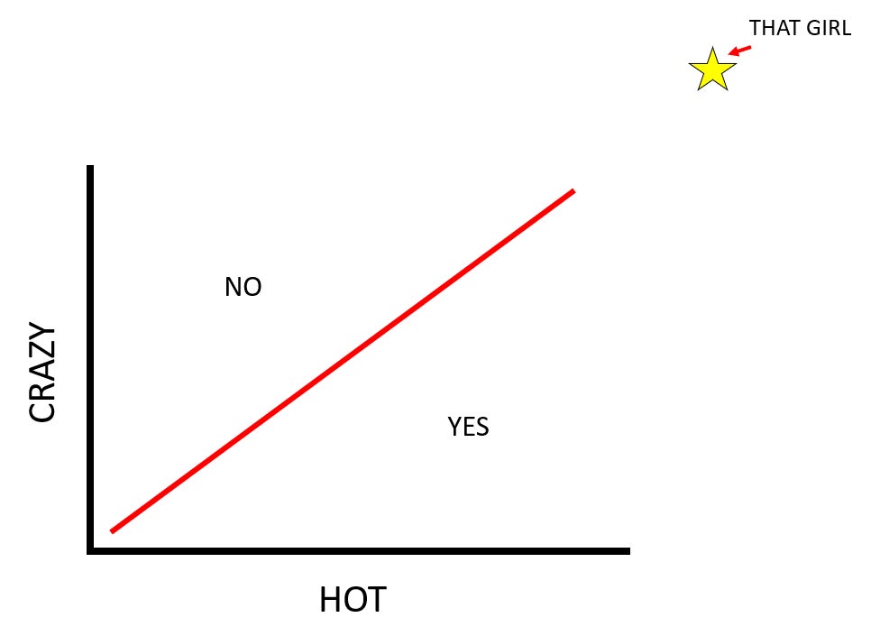 She breaks the scale. If I were single, and I met her at a bar, I'd be torn between whether or not to propose to her on sight, or buy a one-way ticket to Thailand and change my entire identity.