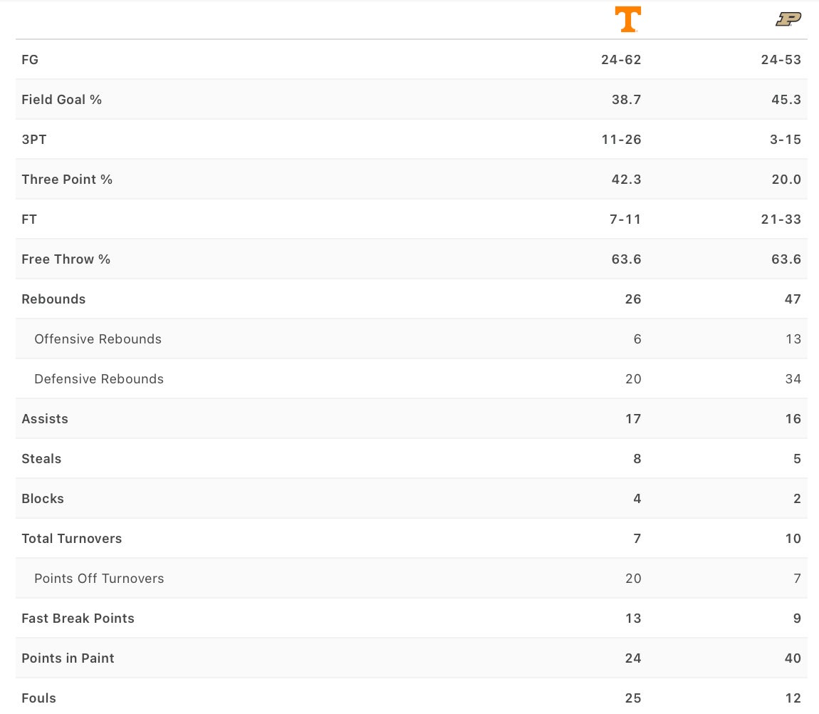 There are too many highlights and stats to possibly post them all, but I look forward to someone on YouTube doing a full breakdown on every call against Edey — and no-call on the other end — because the way refs treat this guy is genuinely one of the most insane things I've ever seen. He already has the biggest advantage anyone could possibly have on the basketball court and officials seemingly go out of their ways to make sure he gets the best whistle in the country, too. You know it's going to happen and it's still shocking when you watch it for 40 minutes.