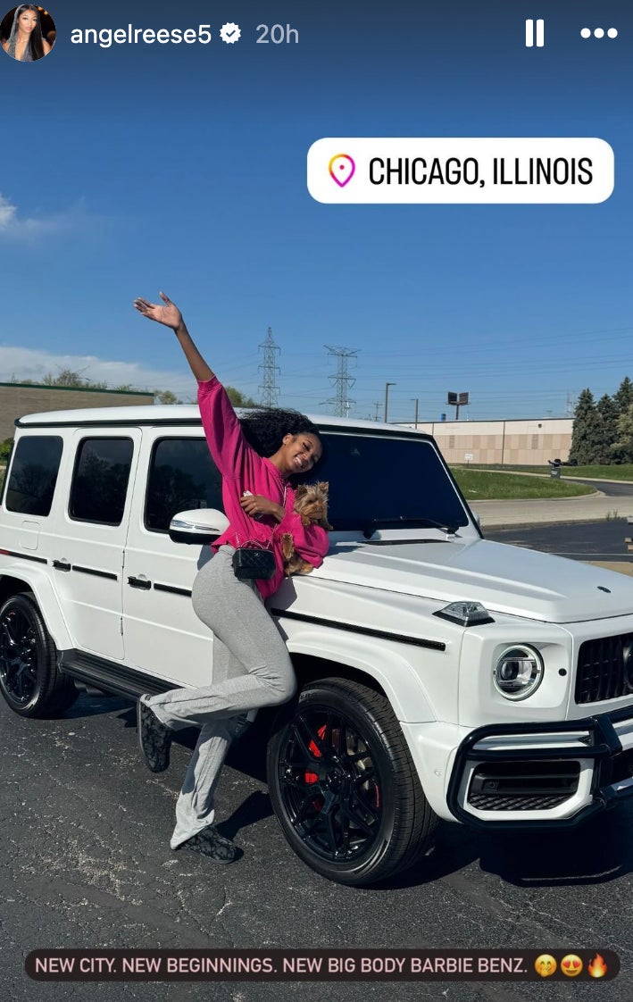 However, Angel must be pulling in some other big time sources of income, because as of last night, she is now whipping around Chicago is a brand new Mercedes-Benz SUV valued at $183,000.
