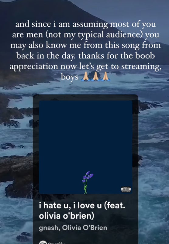 Bravo Olivia! Bravo! This is what you do when you become part of a viral moment. Make a couple jokes about boob appreciation, take note of the fact a lot of guys are following you on IG and then plug a couple songs. Just smart all around and should appreciated. Some people don't know how to act in the moment, but Olivia was a pro here.