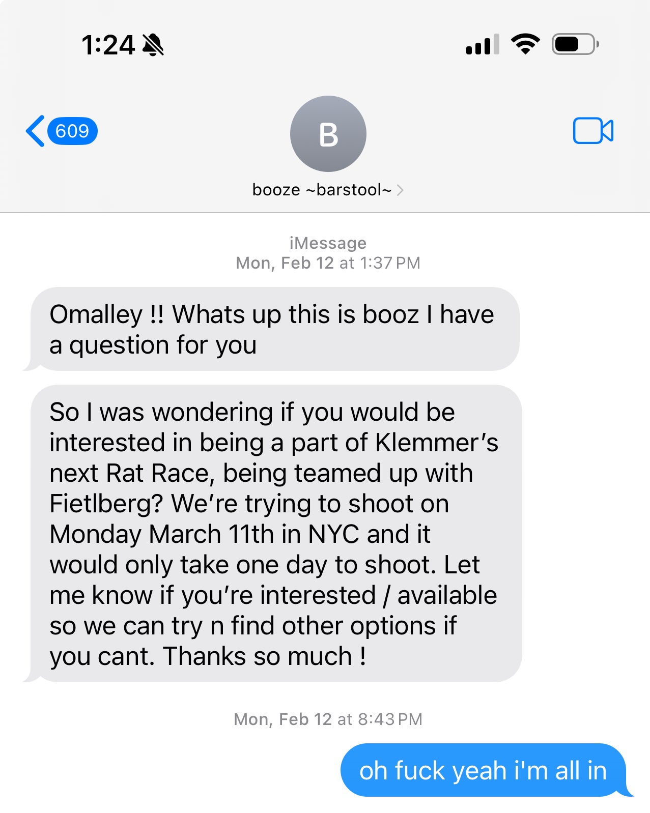 Two months ago I got a text from one of Barstool’s producers, Booz, asking me if I wanted to do the show. If I’m being honest, I had no idea what I was signing up for but I’m a company woman as well as a “down ass bitch." So I replied “Oh fuck yeah, I’m all in.”
