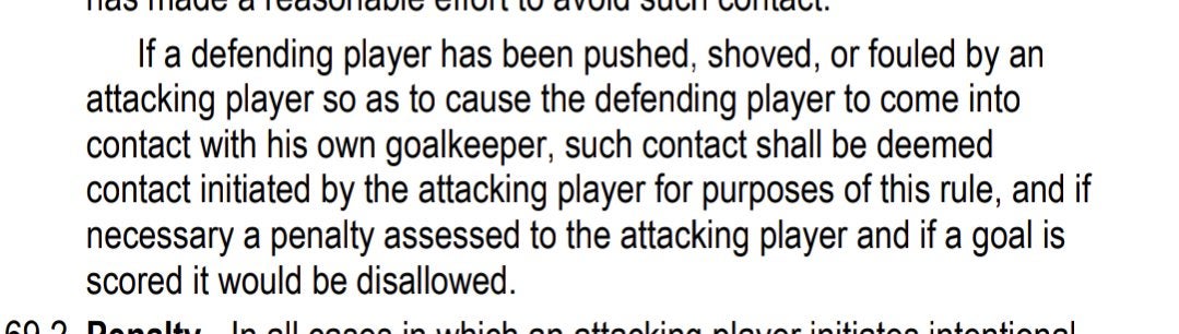 Now listen. I get it. The rules say that if a player is pushed into his own goalie by an attacking player, that should technically wipe the goal off the board.