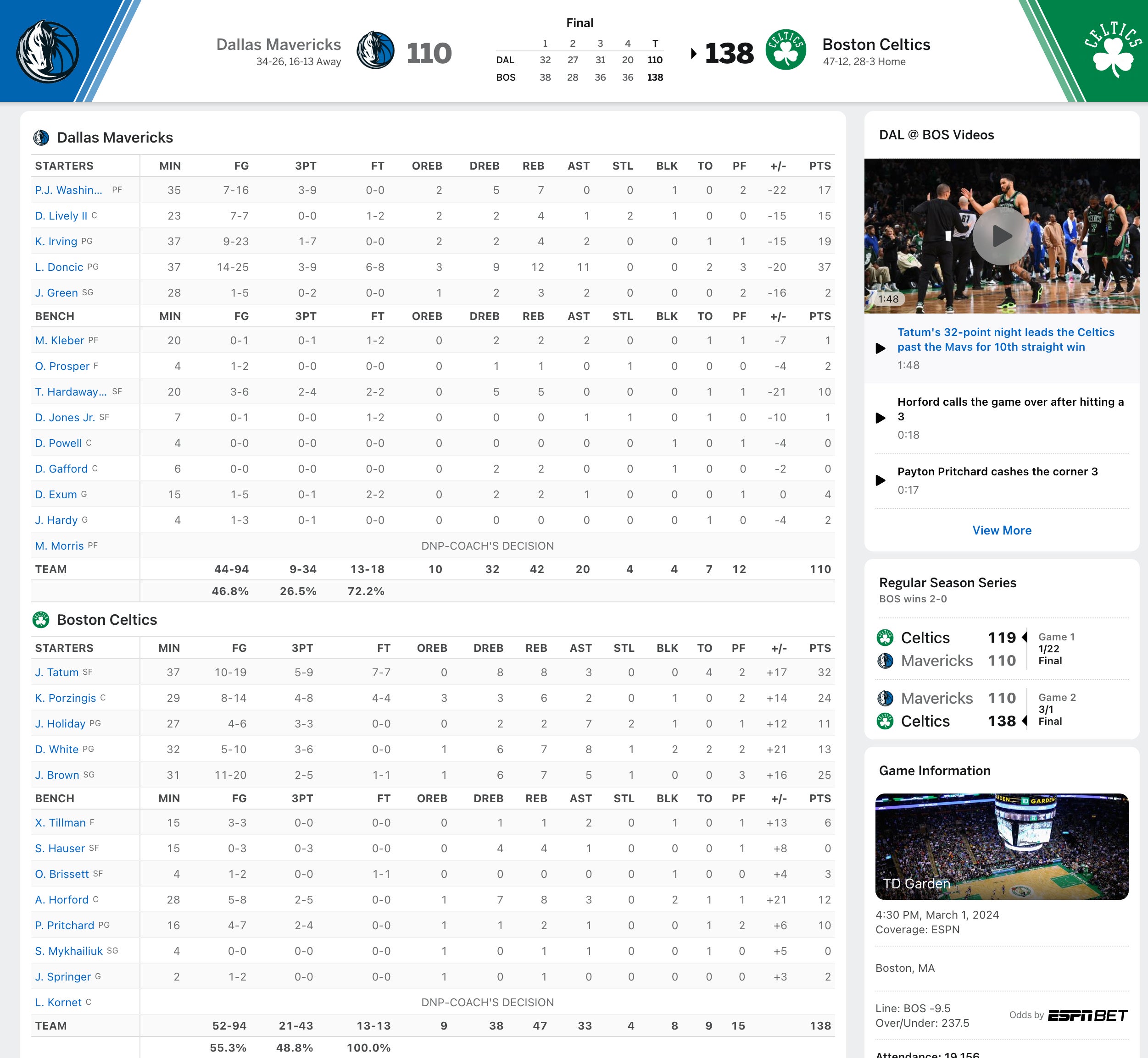 And while a regular season game in March does not guarantee anything in a Finals matchup taking place 3 months later, what it does do is give us an idea of how these teams match up when healthy. You can get an idea of the matchup issues both sides might face, and a look into how I think the Celts will approach this challenge.
