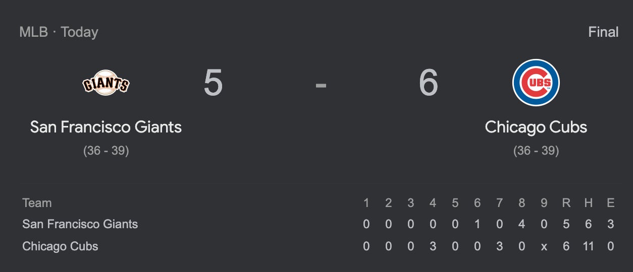 My point is that it was a nice game for a lot of reasons today. It takes me off the ledge for the next couple days. It's finally some positive momentum. Dansby Swanson finally has results. The home crowd gets momentum and there's an off day tomorrow AT HOME before the Mets come to Wrigley this weekend. And with all this, the hope for some magic grows just a little bit.
