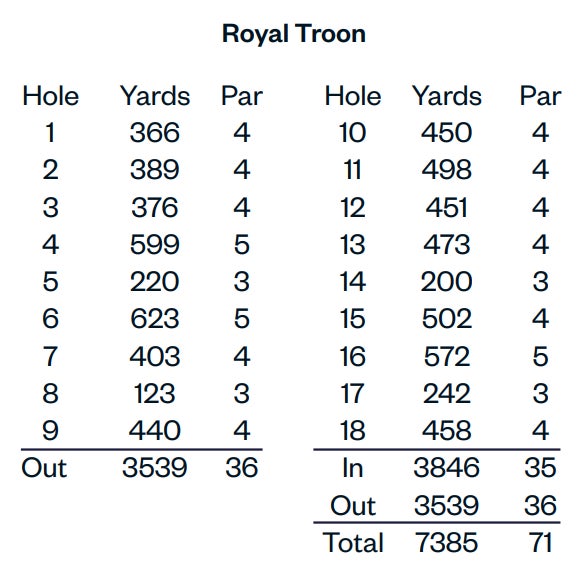 Generally speaking, you gotta make your hay on the front and hold on for dear life on the back. The front 9 is 3,539 yards as a par 36, and the back is longer at 3,846 and gives you one less stroke to par. And that doesn't even factor in the wind. Wild.