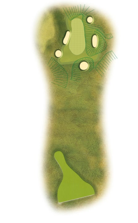 It’s a wonderful hole. There are so many stories over the years of success and failure. Gene Sarazen aced the hole in his penultimate appearance in The Open in 1973, but in qualifying for The Open in 1950 the German amateur, Hermann Tissies, racked up a record score of 15. The reality of the hole is that if the field hits the middle of the green it’s a straightforward par. But if players miss the green long, left, short or right, then they’ll do well to come off with a bogey. Part of the challenge is that given the first seven holes are generally downwind or side wind, players are then suddenly faced with a shot of 123 yards into a 15-20 mph wind. It’s also an intimidating tee shot sitting about 22 feet above the height of the green. The depth of the bunkers and the slope of the green from left to right are clearly visible too, especially the aptly named “Coffin” bunker on the left side. The size of the hitting area is small, so walk off happy with your par.
