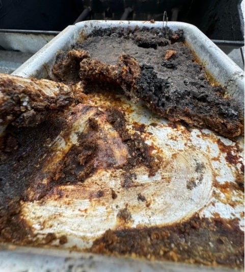 I knew I had to put on the gloves, dig in, and clean the fuck out of it. It has always been a dirty, two-hour job and it needed to be done. Here's the grease tray. It was full…
