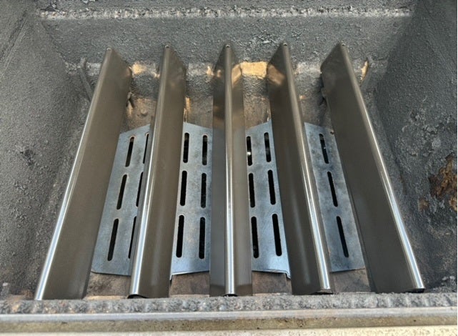 It was loaded with close to three years worth of junk. Over the years, I’ve had to replace several parts, and fortunately, there’s a Weber website that makes it easy to find the right parts for your particular grill. I knew I needed new flavorizer bars, so I ordered them and had them ready to go. They protect the burner tubes from grease/drippings, reduce flare-ups, and create smoke that Weber claims adds flavor to the food…