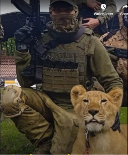 This is just straight out of The Walking Dead, Ezekiel had a pet tiger he would use in combat. Apparently these guys who are insane soccer hooligans that ended up forming a paramilitary group to serve Putin, during the invasion of Mariupol, raided the zoo and took Lion and Tiger Cubs that they now use as their mascots and maybe use them on their enemies or to torture prisoners. It's just horrifying that real-life movie villains exist doing supervillain shit.
