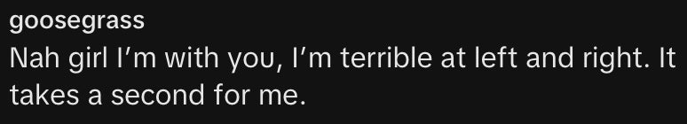 This video has somehow made me question my understanding of the world. I would have guessed less than 1 percent of the population was out here having issues with identifying left and right, but it seems from this comments section straw poll that we might be pushing double digits. I knew we were cooked, but I didn't know it was quite this bad.