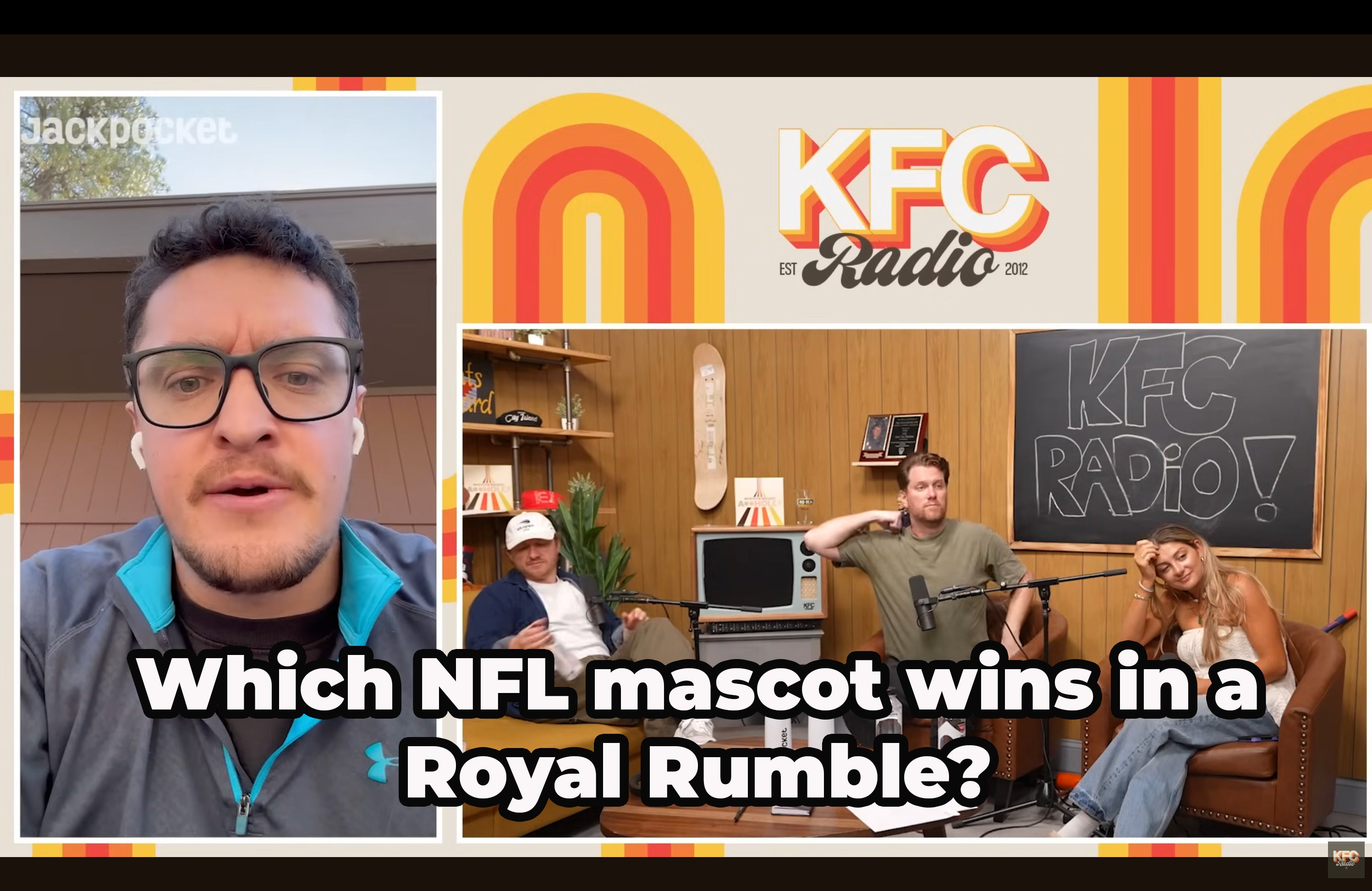 This week on KFC Radio my favorite voicemail was about which NFL mascot would win in a Royal Rumble style fight to the death? The key point in this hypothetical is that each mascot has their powers and assets they would have in their everyday life. So for example, the main draw of picking the Patriot would be that he has a musket at his disposal.