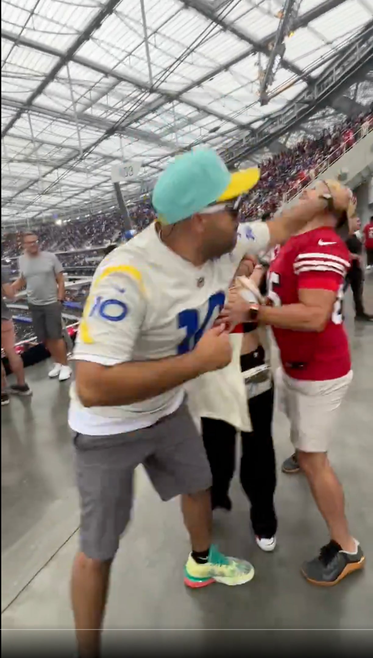 This Niners fan, brimming with misplaced confidence, was practically begging that Rams fan to throw a punch. It was like he was offering free shots to his face. The Rams fan, already squared up and ready to rumble, doesn't need much convincing.
