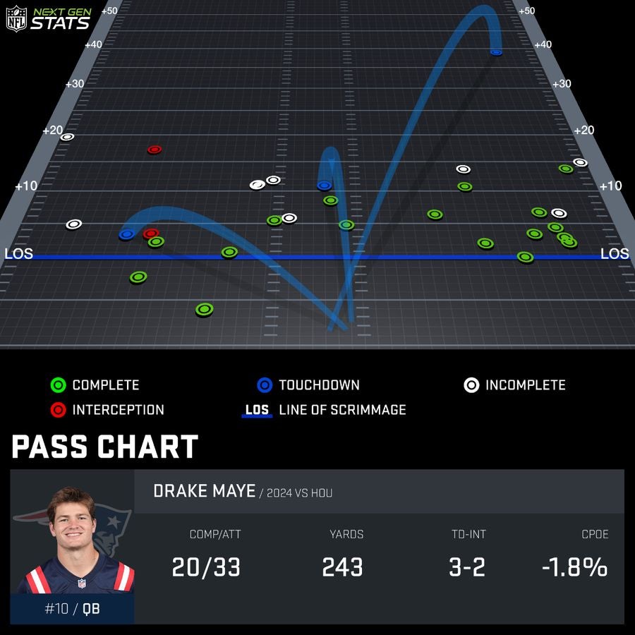 --I mean, look at Maye's spray chart (Pro tip: Be careful asking Siri, "Show me Maye's spray chart." You might not get the result you were looking for.) from NextGen and tell me the last time you saw this many attempts of over 10 yards: