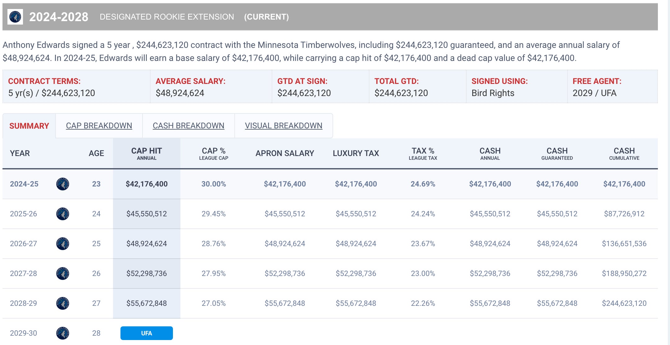 That's only part of the story top. If Ant develops like we think he all will, he's going to make an All NBA team at some point during that extension. You know what that means? It means at some point over the course of that 5 year extension, Ant is going to become supermax eligible. By that time, supermax contracts could very well get as high as $350M-$400M…again guaranteed. That 3-4 year timeframe is right around when I would expect Ant to be eligible for that extension, so no, I don't think he's going to bypass that payday either just to try his luck at football.