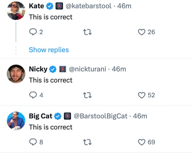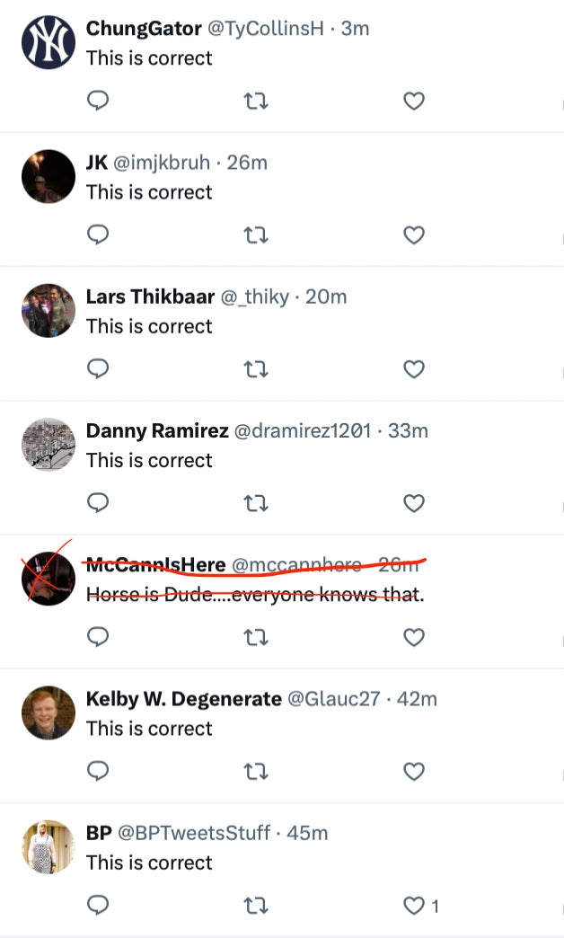 The only slight disagreement was that I thought horses are just girls and KB thought they were hot girls, but it's been settled peacefully. Anyways, here's the full list below and also a photo of Fasoli in a super tight bucket hat. Please feel free to comment that "this is correct" and/or "what the fuck did I just read". (And if you do comment the latter, highly recommend tuning into The Yak & it will make more sense. We're live every weekday from 12 - 2ish CT.)