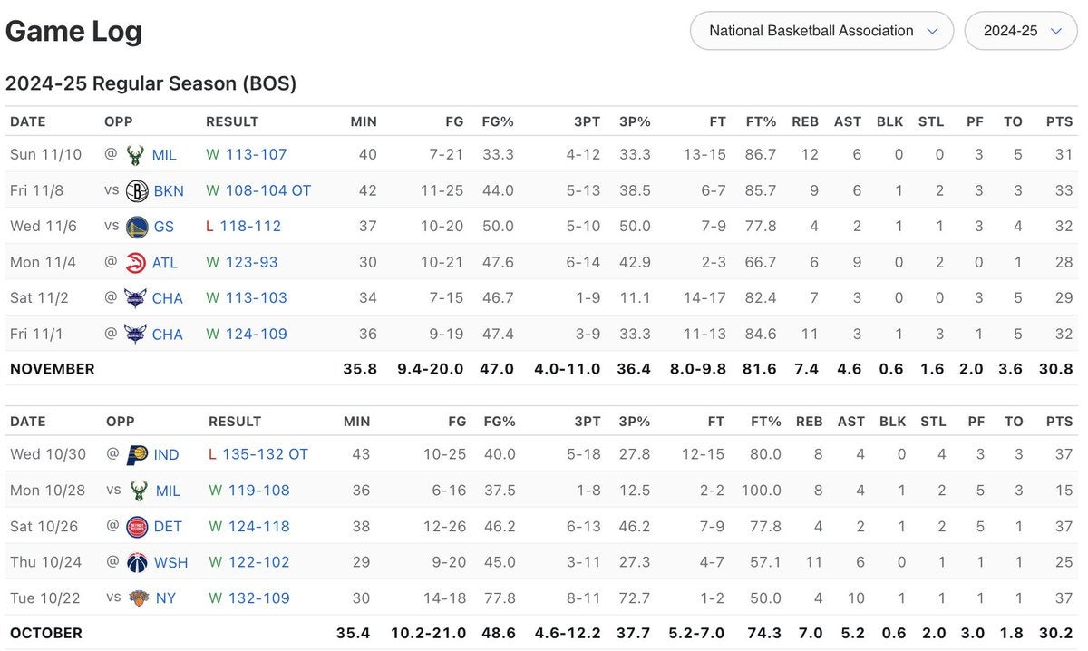So far through 11 games, I think it's fair to suggest that we are not only witnessing the best basketball of NBA Champion Jayson Tatum's career, we're watching one of the best starts to a season of any player in the NBA not named Nikola Jokic. We've now reached the point where 31/12/6 has become the standard. It's not like Tatum was incredible in this game, he was just his normal dominant self