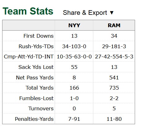 #2 - Yanks/Rams Week 1 1951 (569 yards)