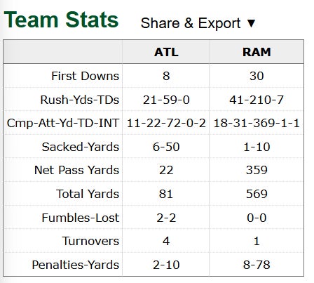 I guess life comes at you fast for the Rams who were on the better side of this stat in 1976 only to be the bug on the windshield three years later in 1979. They won this one 59-0 at the Coliseum as 14-point favorites.