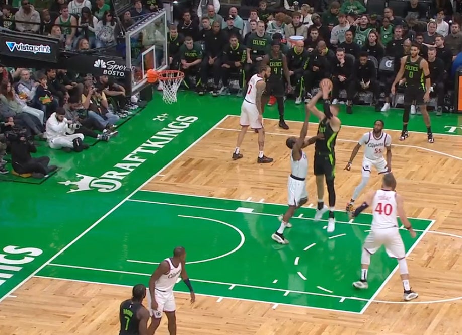 If you decide to switch, well, that's death too. The Celts didn't even really unleash KP on the FT line/elbow all that much in this game, but when they did, it was automatic points. Remember, this dude is 7'3 with elite shooting touch. They just don't make humans like this, and chances are your team does NOT employ a defender that is prepared for this on any type of switch