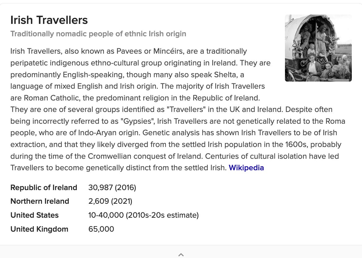 But just for context, here is what google defined "irish travellers" as: