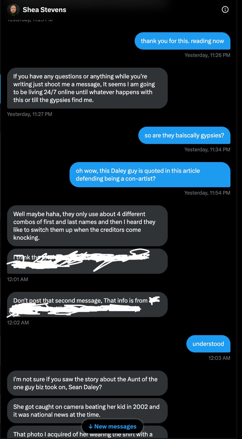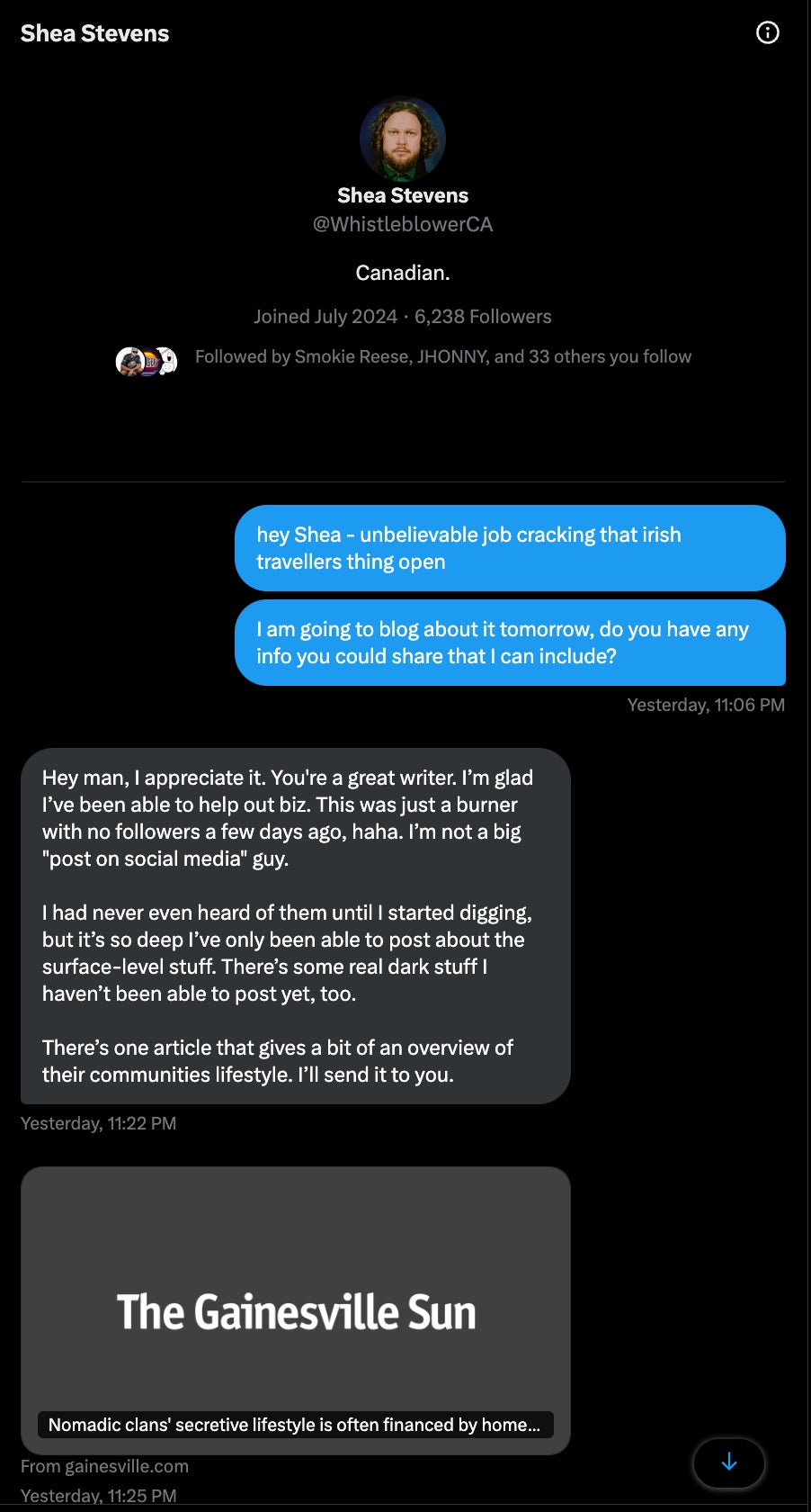 Here is the convo I had with Shea, the guy who dug all this up on these lowlifes.