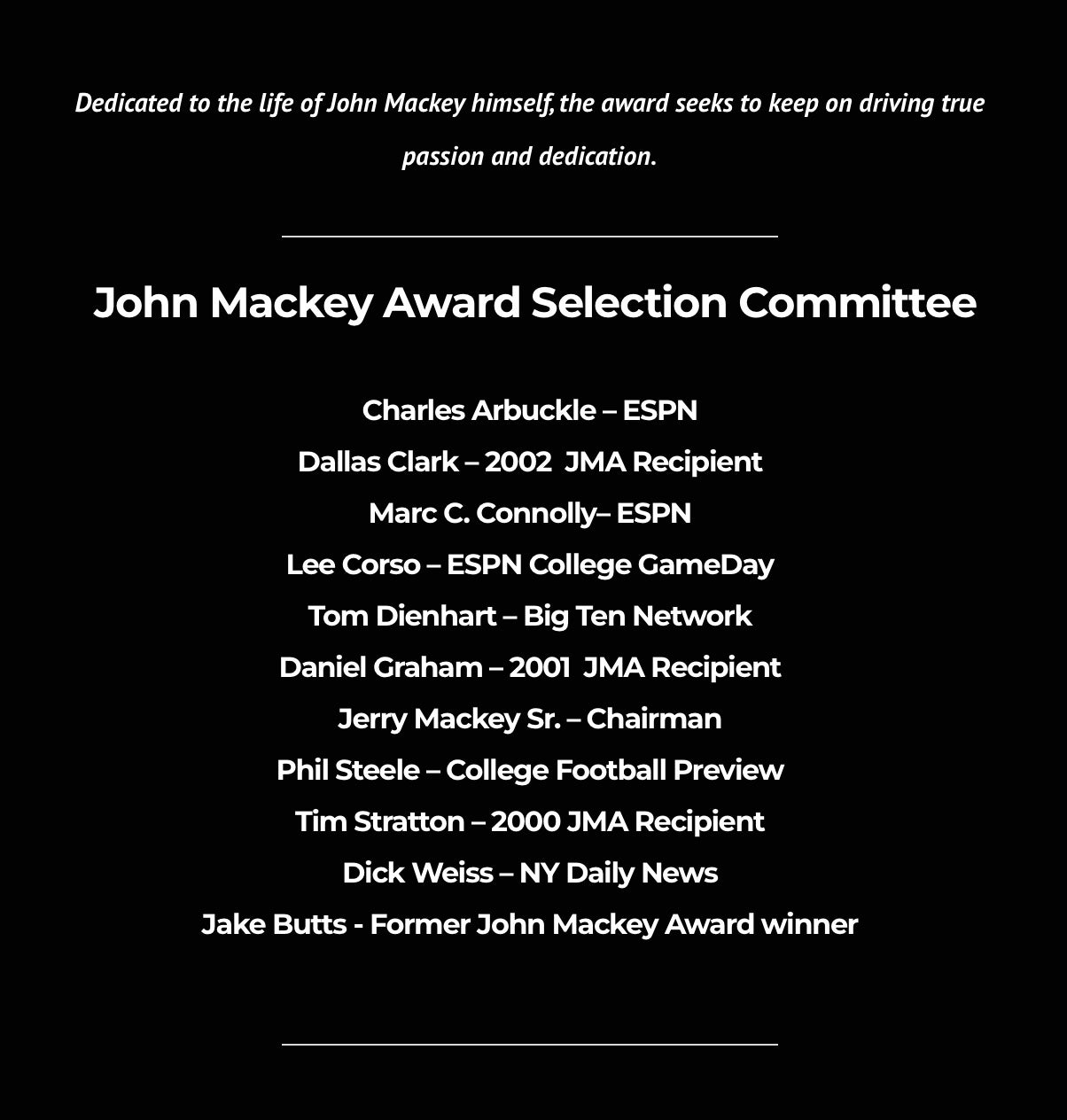 Above all I'm disappointed in myself for ever getting my hopes up. What a fucking idiot I am. Especially considering that of the 11 John Mackey Award voters… one is Lee Corso… one is Tom Deinhart of the B1G Network (formerly he now covers Purdue)… and 3 of them are former B1G Tight Ends (Jake Butts/Michigan, Dallas Clark/Iowa, Tim Stratton/Purdue).