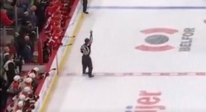 There are a couple of things here that legitimately saved that ref's life. For starters--the fact that the Red Wings didn't score on the empty net as the Flyers were bringing Ersson to the bench for the extra attacker. Secondly--that no penalty ended up getting called on the Flyers for "too many men" because Sam Ersson originally came to the bench once he saw the ref's arm go up to call a penalty on Detroit.