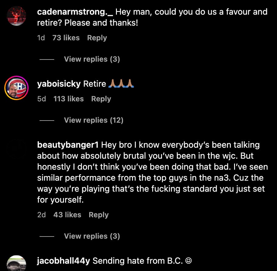 It's honestly impressive. Every year that the Canadian junior team fails to blow everybody out of the water, the entire nation finds one kid on the team to attack.