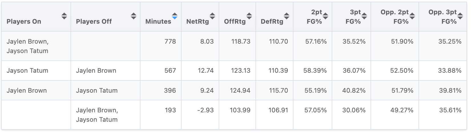 Now, you know what comes with this. The weirdos about Jaylen and the Tatum stans will say this is all Jaylen's fault and that he can't run an offense. Unfortunately for those people, the numbers don't really suggest that