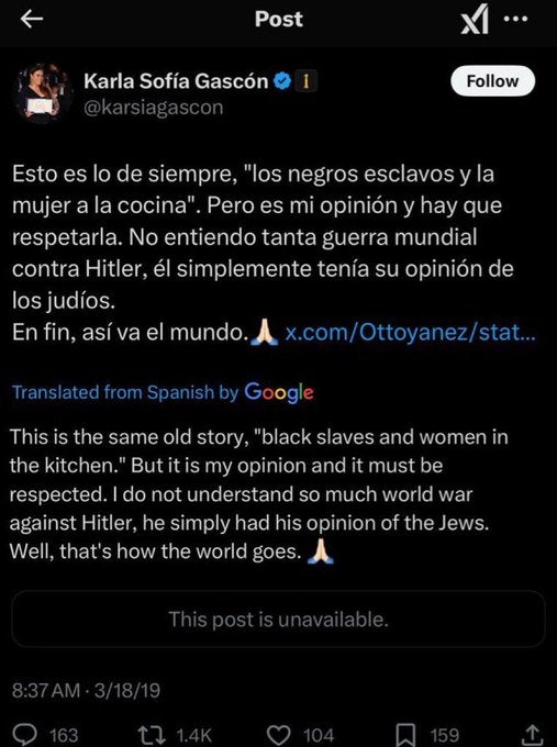 And yet, someone the story of Emilia Pérez's journey into Oscars legend just keeps getting better. Like anyone who gets suddenly famous out of nowhere like a lightning strike, star Karla Sofia Gascon's social media past got a good going over. And the results were less than ideal for everyone involved: