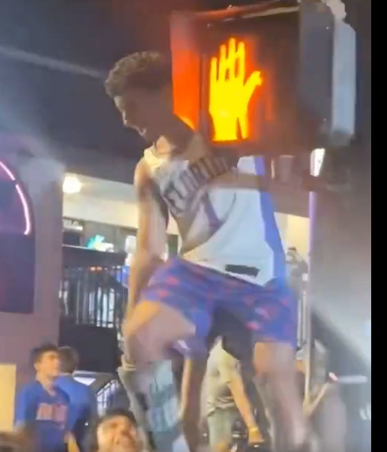 You know what? Typically I'd say this is miserable because there are a million people out, but not tonight. You win a title, you do whatever the hell you want. That's especially true when you're in college and life isn't real. Go party, don't go to class, which should be canceled tomorrow. But we all knew there was no shot Florida trying to grease the poles was going to work. You got a dude in a walking boot up there.