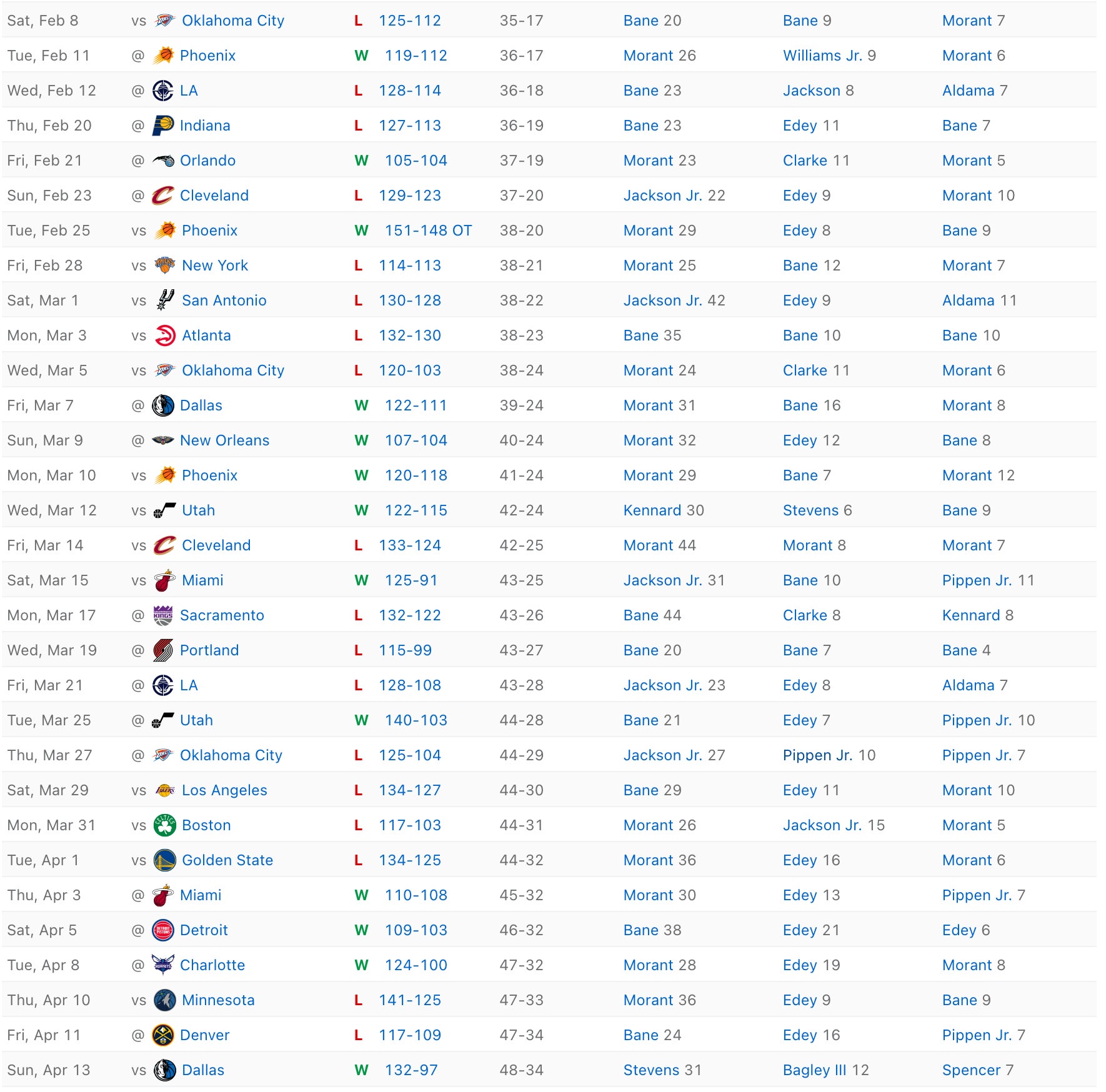 Usually you'd think the better team would bounce back after a loss, especially at home, but the Grizzlies are in a weird spot given their slide. If you look at how they've done since the trade deadline, in addition to their Play In loss, they've basically lost to every single team with a pulse
