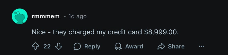 Who would have thought decimals matter so much? Just seems like simple mixup! But man when it rains it pours in Baltimore. Not only did you watch them lose by 22 on Sunday, now your card is charged for almost $9K! Talk about adding insult to injury. They were able to refund all the overcharge in a timely manner I believe, but you just have to laugh. The O's have to pay for these extensions somehow I guess, right? Midas whale try and make that extra coin by streaming. $90 per year is a perfectly reasonable price to watch baseball, maybe not this team at this exact moment, but I could be convinced to do it if I didnt have cable. But it's just hilarious that the team can't get out of their own way, are sleepwalking and look more lost than ever, and MASN is accidentally charging fans $8,999. Just have to laugh at this point, what a shit show we have going on in Baltimore.
