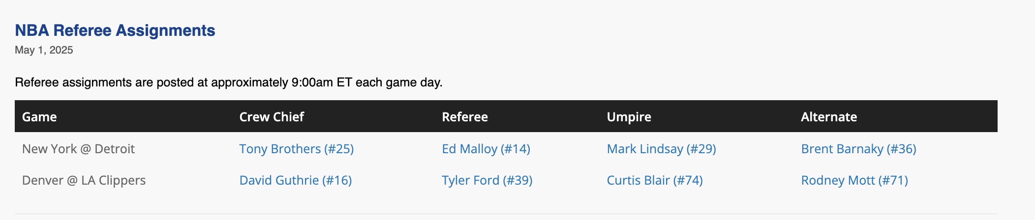 Arguably two of their worst in Tony Brothers/David Guthrie, both of whom have had some pretty brutal moments so far in these playoffs, especially when it comes to questionable calls/extending series. Shit, the fact that the Knicks even have a chance to close things out tonight is David Guthrie, so it's no surprise at all that the league sent Tony Brothers to that matchup tonight.