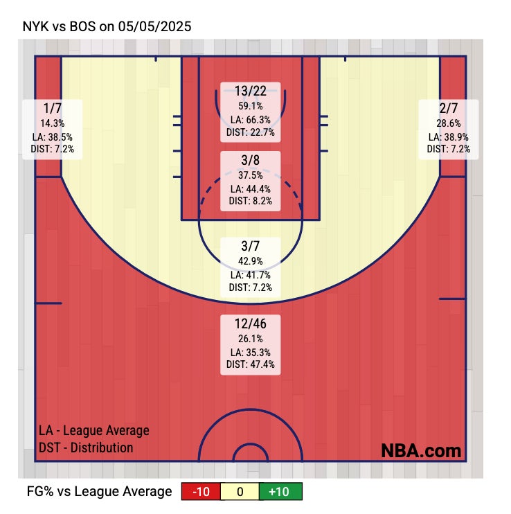 The Celts easily left 8-10 points at a minimum on the board due to their inability to make point blank 2pt 2FGA. Just 16-30 from that zone? While the Knicks didn't reall have any legit rim protection? I mean what the fuck