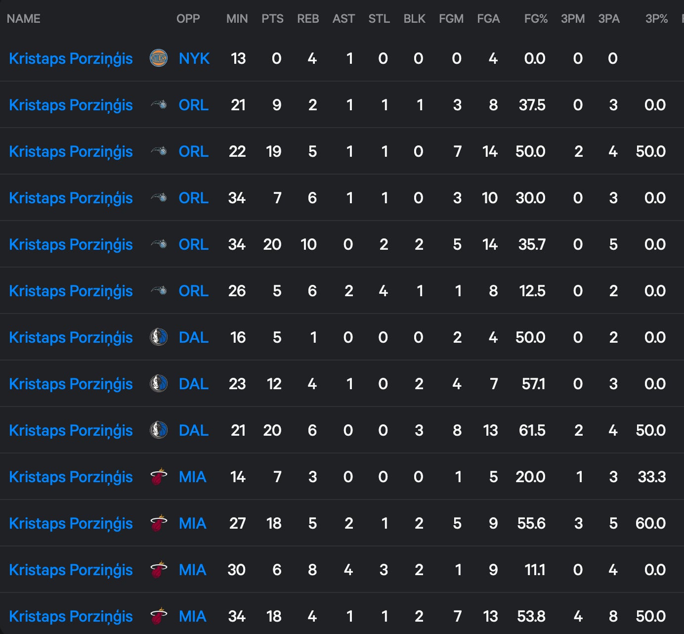 - Kristaps Porzingis has been active for 13 playoff games as a member of the Boston Celtics (shooting 39/26%). I do not think it's a stretch to say that he's been "good" in what, maybe 3? Maybe 2.5? You decide for yourself