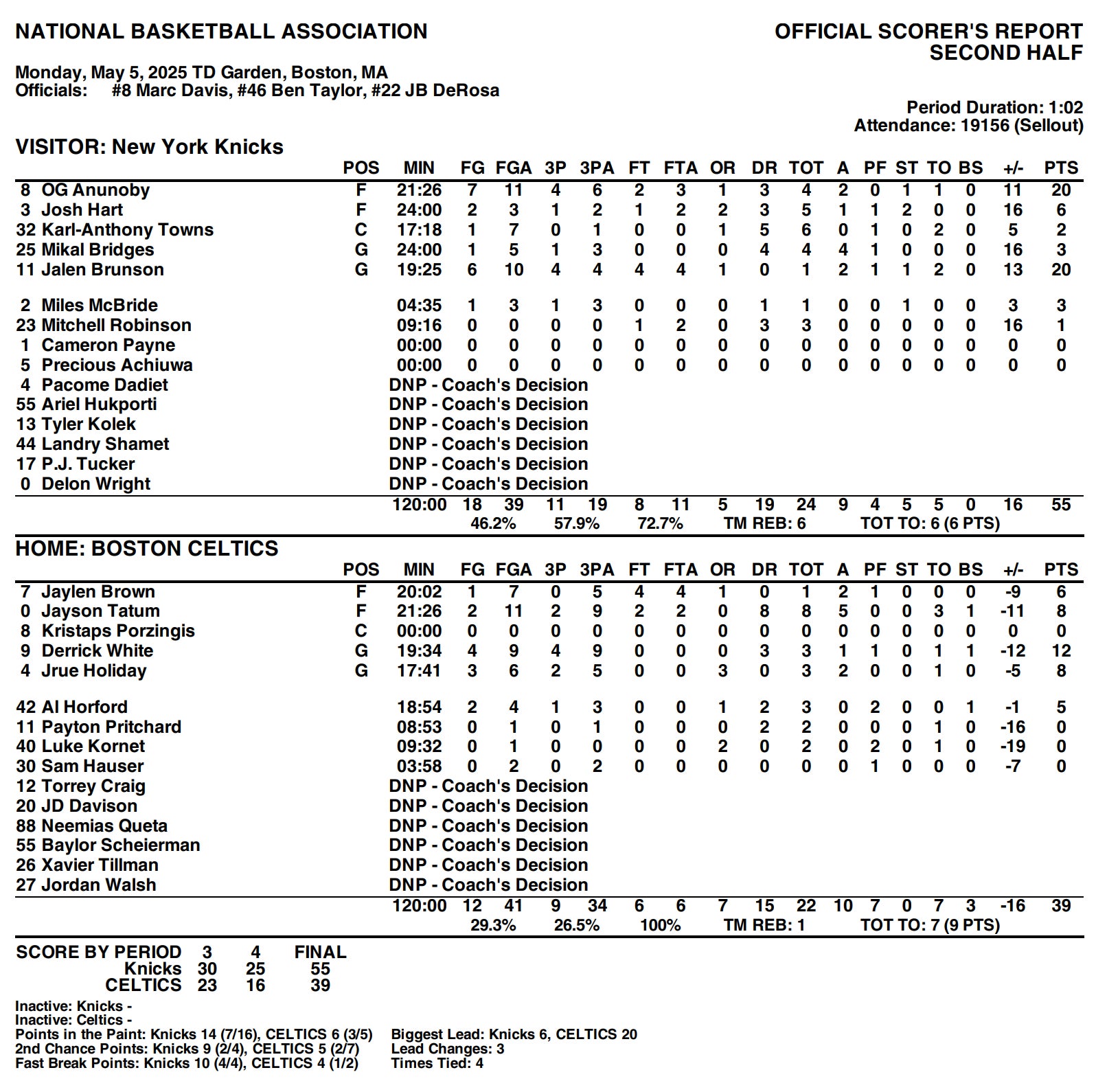 Essentially, they failed in all 3 areas, so it's no surprise that the result was a disastrous loss. You can survive one, maybe 2 of those issues with this version of the Celts. But when they hit all 3? They don't win. Period. A total of 37 points off self-inflicted wounds, the worst part was of course, the timing of these issues. When the game was tight and it came time to execute, the Celts struggled in all 3 of these areas, especially the defensive rebounding. You KNOW Josh Hart is going to crash the glass, yet nobody put a body on him all night (5 OREB). Why is this important? Because it led to extra possessions, which led to Knicks buckets in huge moments