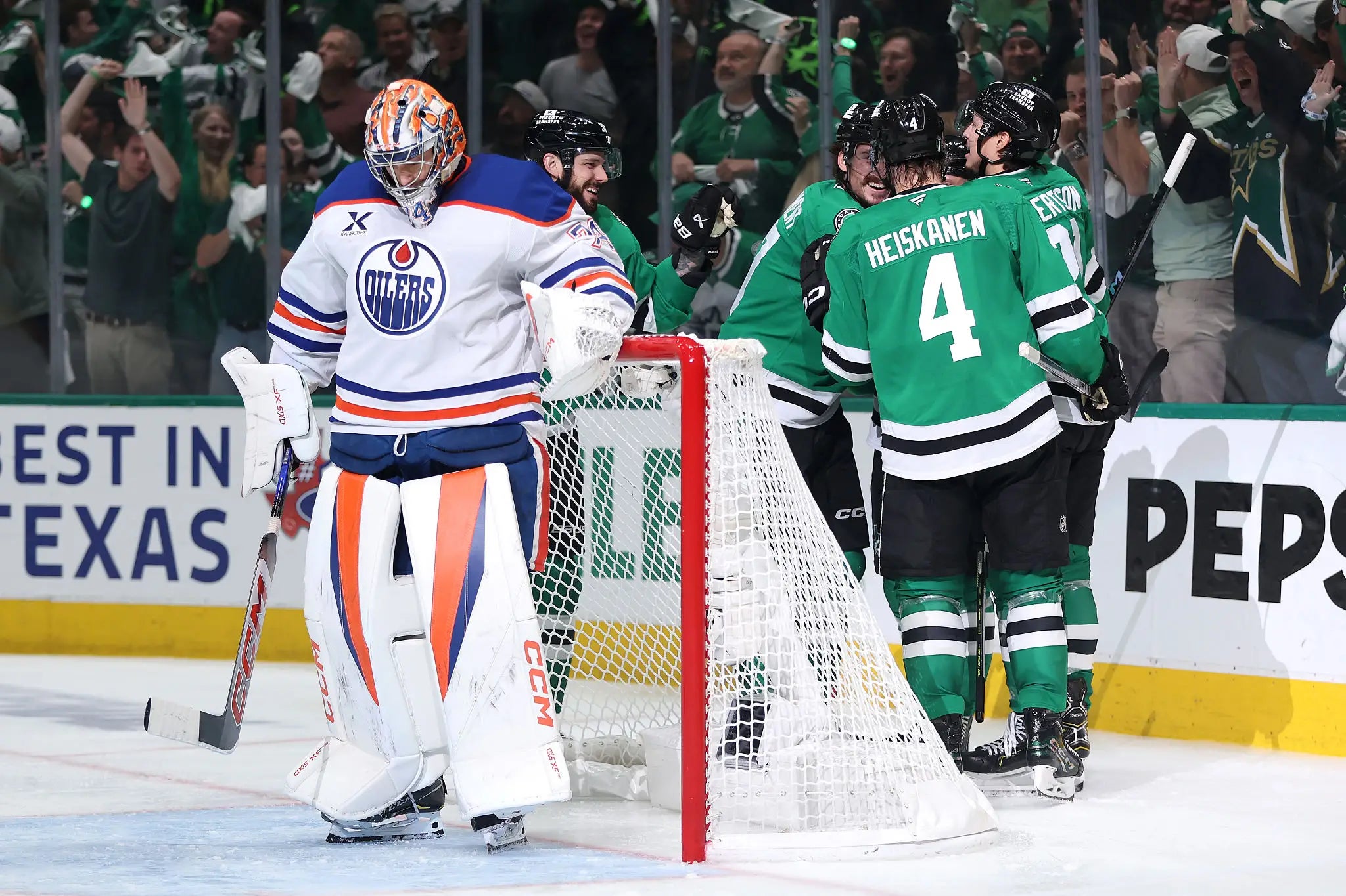 Here they are in game 1 of the Western Conference Final, and they're taking a 3-1 lead into the 3rd period. Draisaitl has 3 points on the night with a goal and 2 assists. McDavid has 2 assists. You have two of the best players in the world on your team, and they have a combined 5 points on the night. All you have to do is just ride out those final 20 minutes and not fuck things up for yourself.