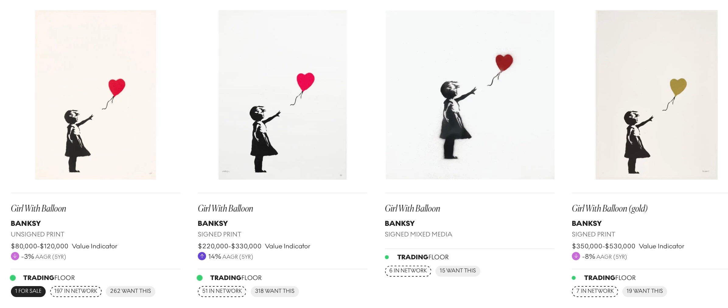 And when the Banksy guys are feeling really cocky, after convincing some sucker to cough up $1.4 million for one of their Balloon Girl's at auction, they destroy it right in their face. Which somehow only increases the painting's value by 1,814%.
