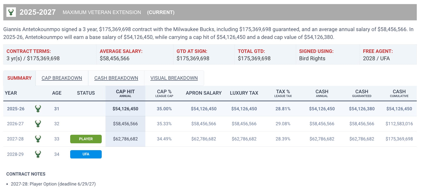 Well, do we think Shams cares about that? Of course not. Because now that it's the dead period of the NBA calendar, it's time to play the hits. Normally, I'd be putting stock into Shams being so stubborn about this and continuing to "report" it, but I can't move past all the bullshit from this whole offseason. He's weirdly become more of a content creator than an NBA reporter. He's no dummy. He knows this is going to generate clicks and eyeballs and all that stuff. He keeps saying the same shit while actually not even saying anything of substance. I mean, that sounds exactly like what he said in February, then May, and now August. As a reminder, Giannis is under contract for another 2+1