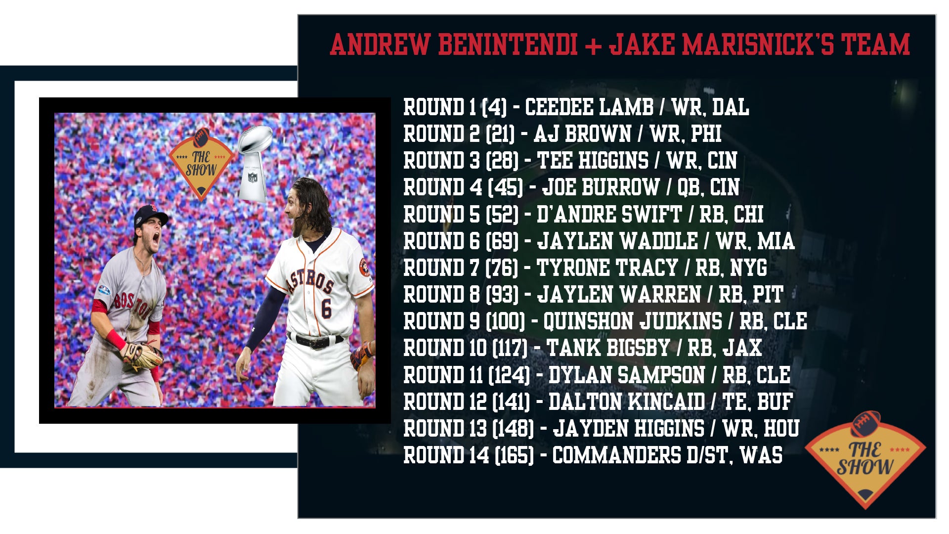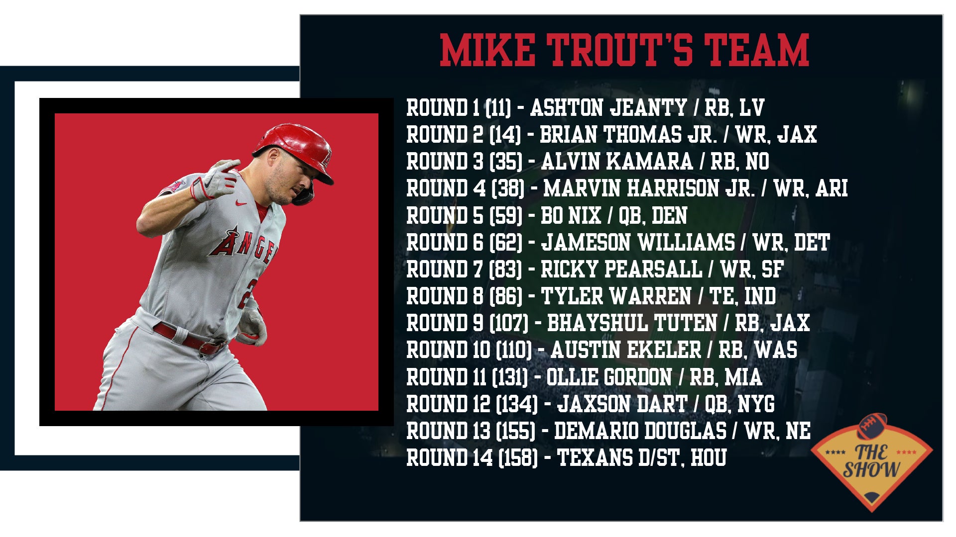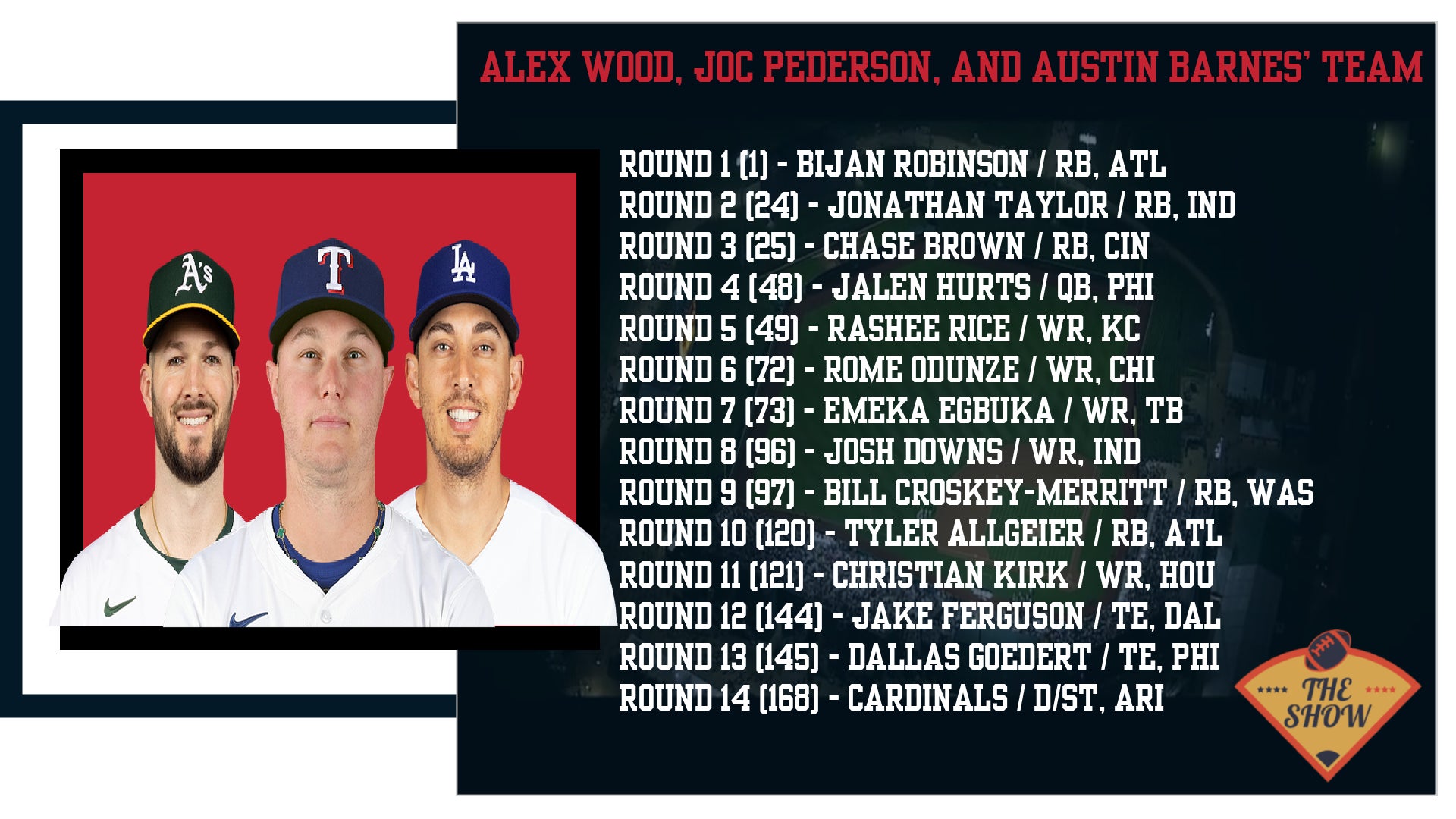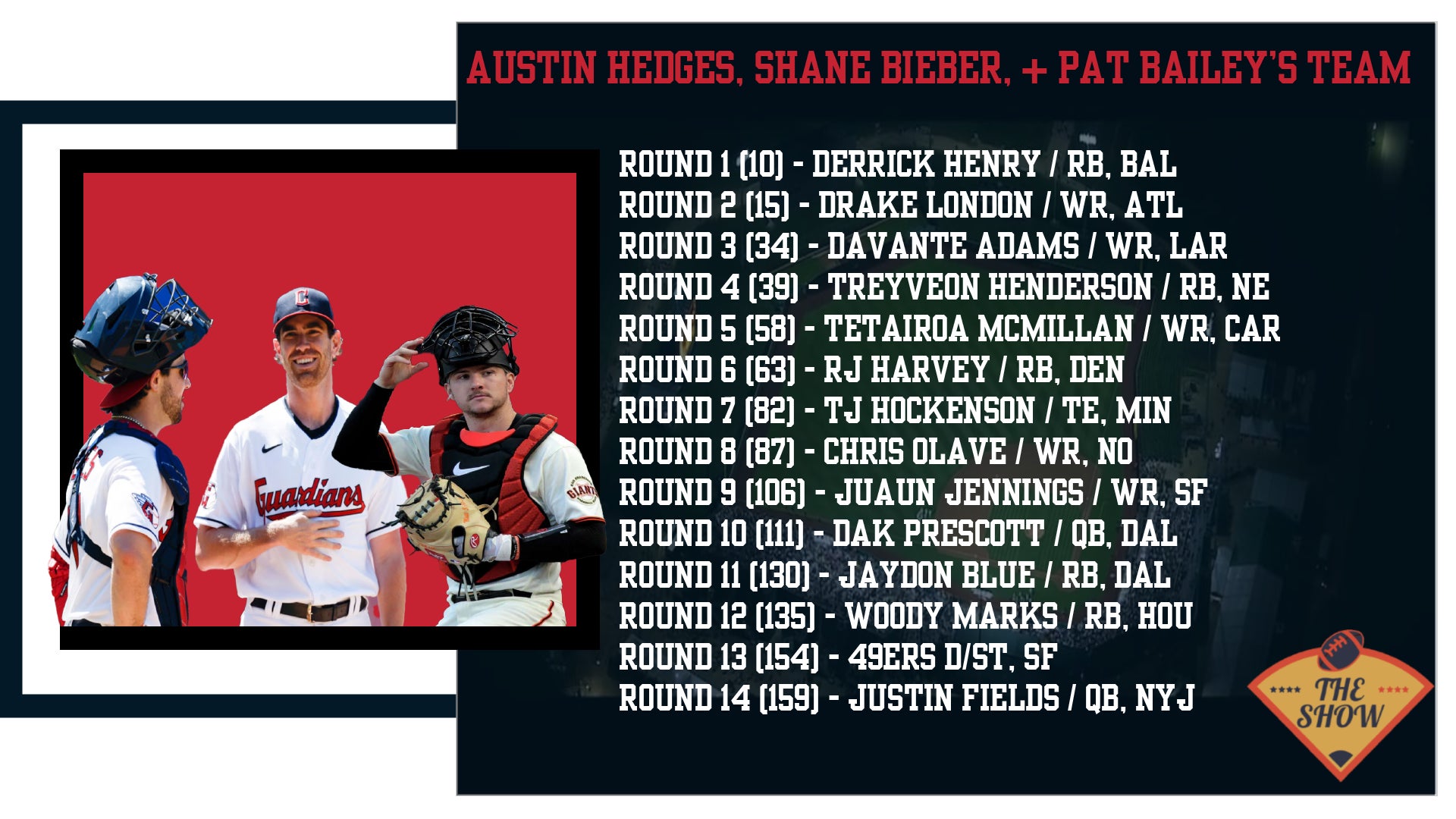 This trio's strategy appears to be taking a ton of fliers, which I think is smart. The hope is that a couple of these guys pop off. And with Tetairoa McMillan, Treyveon Henderson, RJ Harvey, Jaydon Blue, and Woody Marks, they have five rookies that could be impact guys. On the flip side, they could be cut candidates a few weeks into the season if they're slow to develop so this team, while having good building blocks and a lot of potential, will need a wait and see approach as so much is unknown.