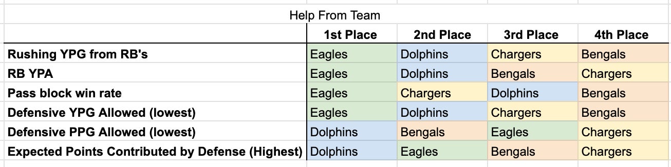 Lets look at the background of this matchup. The Chargers came into this matchup as probably the 1A 1B most injured team in the league next ot he 49ers(now firmly #2 with the loss of Fred Warner). Their starting LT, RT, RT2 and LT2 were all out. In their place was Austin Deculus, who gave up 3 sacks and 5 pressures in his first start last week, and Bobby Hart, who was signed off the street and hadn't started an NFL game in FOUR YEARS. Their RB1 and RB2 are both on the IR. In their place was Hassan Haskins, a special teamer/blocker, and Kimani Vidal, who was elevated from the practice squad. And to tie it all in a nice bow, Their WR1 and FB were both out as well.
