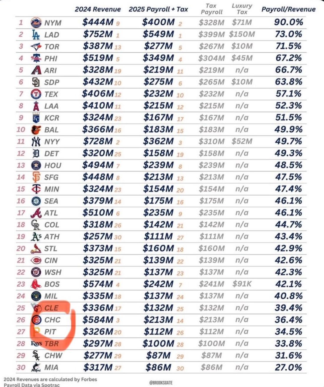 Make no mistake about it, the Cubs are one of the "rich" teams. Just use your eyeballs and look at what the Ricketts have built in Wrigleyville over the last 15ish years. It's a baseball Mecca that PRINTS money.