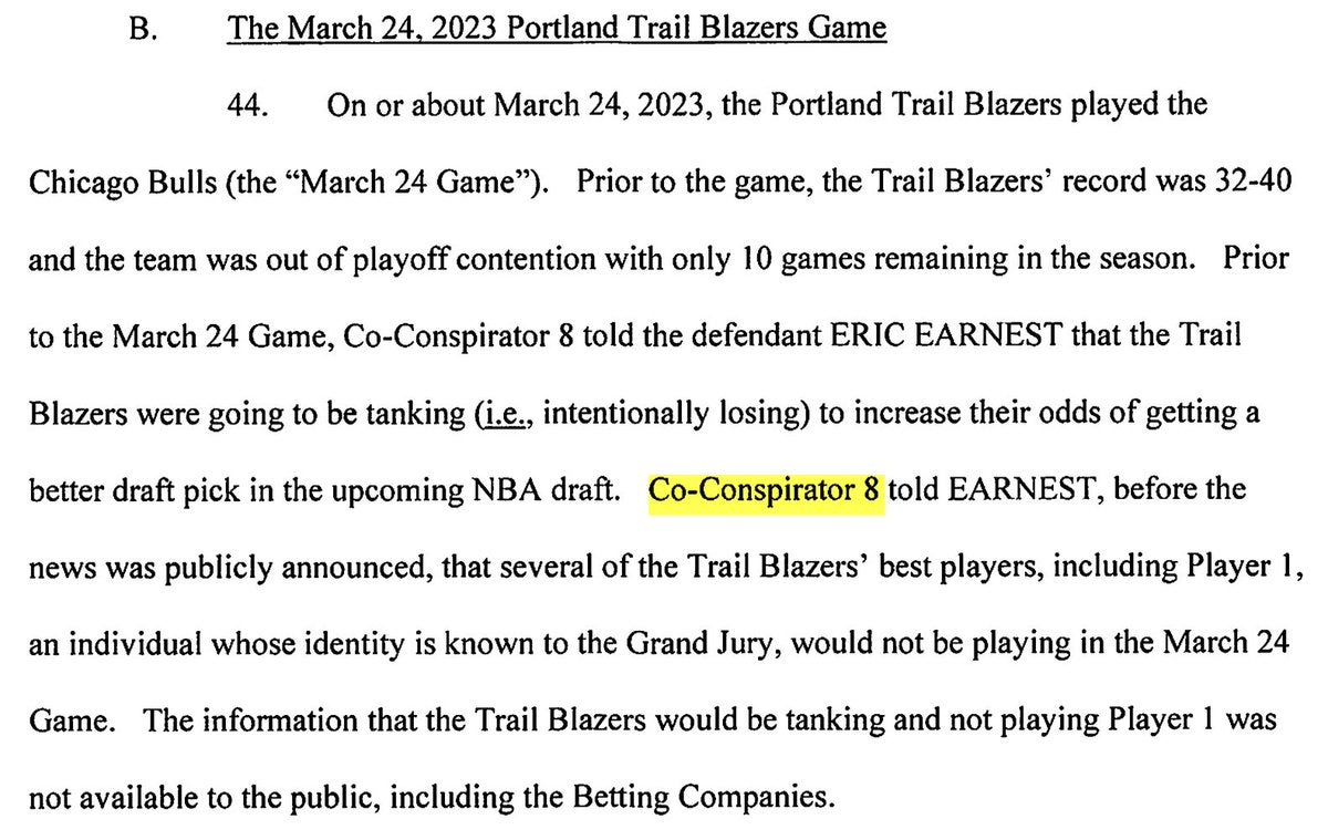 You'll then remember, the Blazers ended up with the #3 pick in the 2023 Draft, taking Scoot Henderson. A player who at the time, most considered one of the surest prospects in the Draft. It was clear at the time what the Blazers were doing to end that season, which isn't all that different from any other lottery bound team hoping to land a generational pick. Everyone tanks. That's not the issue. The issue is what Billups allegedly may have been doing while the team was tanking. Even if it didn't take a rocket scientist to know that the Blazers were about to fully commit to the tank at that stage of the season, I'm not sure that matters. It still doesn't change the fact that an NBA coach was allegedly revealing information that was not available to the public.