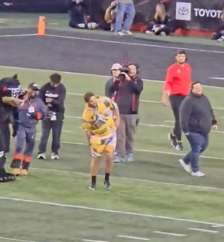 We're old. You never know if someone pops something during a mindless move. Trust me, it can happen to you, someone you love or anyone else. Also smart to have Eddie out there. Some may blame him for a bad hold. I'd be screaming that. But, there's just no hope. That kick somehow may have been worst. I love Dana, the man loves hoops, beer and Cincinnati, so there's not much wrong with him. But this is the sign. You either gotta prep for a year or hang up the boot. Some are calling him Ray Finkle, I won't go that far. I won't say he looked defeated before that first step to kick this one to the moon.