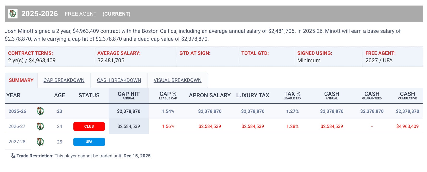 Josh Minott is 22 years old (turns 23 in November). This is his current contract situation